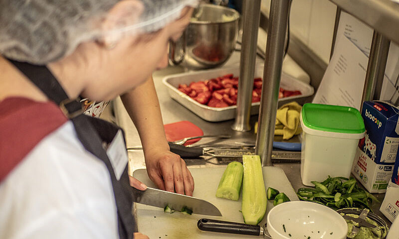 Les binômes doivent réaliser une entrée et un dessert à base de produits locaux, biologiques et de saison.