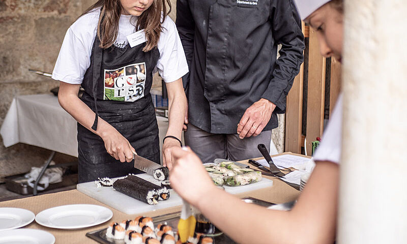 Depuis 2018, le Département et son service restauration Durable des collèges organisent un concours de cuisine des collégien.ne.s dont l’objectif est de mettre en avant l’éducation au goût, de valoriser le « bien manger » local et bio, mais aussi de sensibiliser nos collégiens au savoir-faire de nos équipes de cuisine.