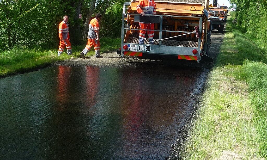 « Enduits Superficiels d’Usure », « Matériaux Bitumineux Coulés à Froid », « Grave Emulsion », « Béton Bitumineux à l’émulsion » représentent l’essentiel des matériaux employés dans le Gers pour le renouvellement des chaussées.
