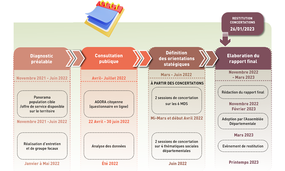 Ce schéma directeur repose sur une démarche de concertation avec l’ensemble des acteurs de l’action sociale, les élus, les agents, les partenaires et la population, à travers cette consultation citoyenne.