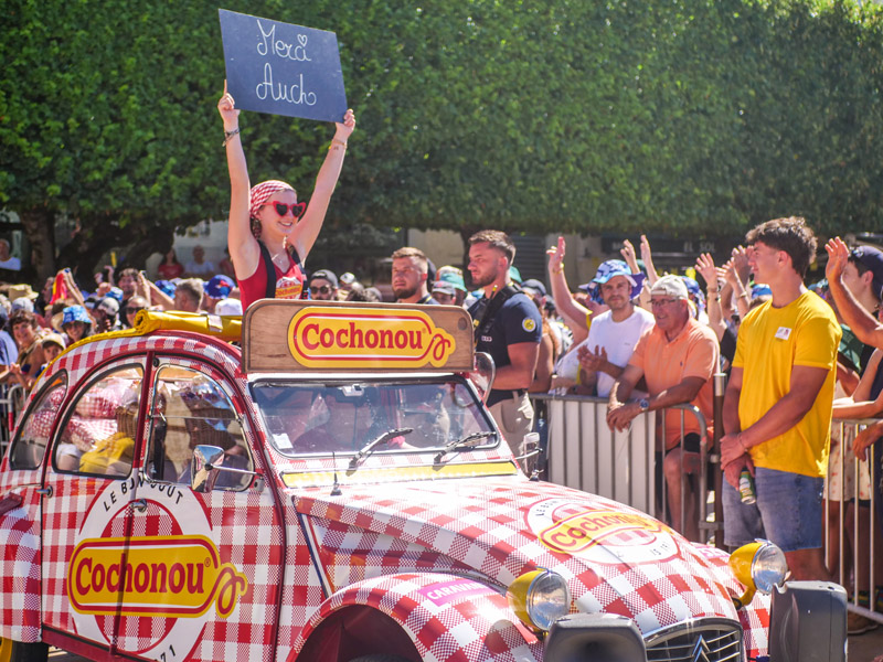 Malgré un soleil de plomb, la ferveur ne faiblit pas. Le public est venu en nombre célébrer cette grande fête populaire et applaudir les coureurs au moment du grand départ de cette 12e étape entre Auch et la redoutable montée d’Hautacam.