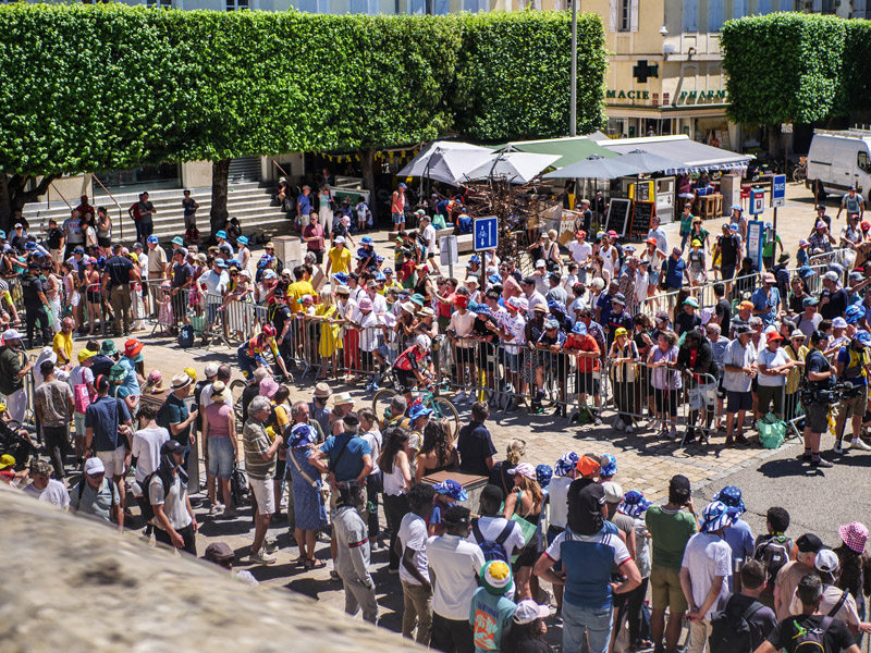 Une foule cosmopolite s’y presse : des Gersois bien sûr, mais aussi de nombreux visiteurs venus des quatre coins de France et de l’étranger. Christina et Nicolaï, un couple danois, témoignent de leur passion pour la Grande Boucle : « On suit toutes le Tour de France à la télévision et là on a la chance de pouvoir profiter de notre séjour en France pour voir les cyclistes en live. Nous allons profiter de cette étape pour visiter le Gers », sourit Nicolaï.