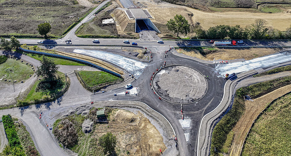 - Phase 2 (de juin 2024 à début 2026) : travaux de terrassement et assainissement de la section courante.