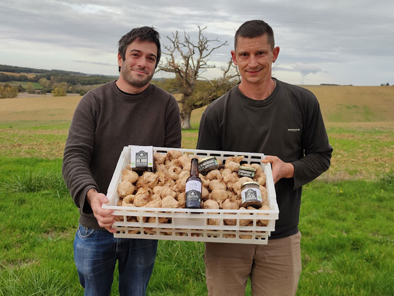Au cœur du Gers, Nicolas et Fabien, deux amis d’enfance, ont transformé une passion commune pour leur terroir en une aventure entrepreneuriale unique : L’Étuverie, dédiée à la production d’ail noir biologique. C’est lors d’un voyage en Asie qu’ils découvrent l’ail noir, un ingrédient prisé pour ses propriétés nutritionnelles et son goût raffiné. Inspirés par cette découverte, ils décident de mettre en valeur l’ail de Lomagne. L’aventure prend racine dans la ferme biologique familiale de Nicolas, où L’Étuverie s’installe pour redonner ses lettres de noblesse à un produit bien de chez nous.