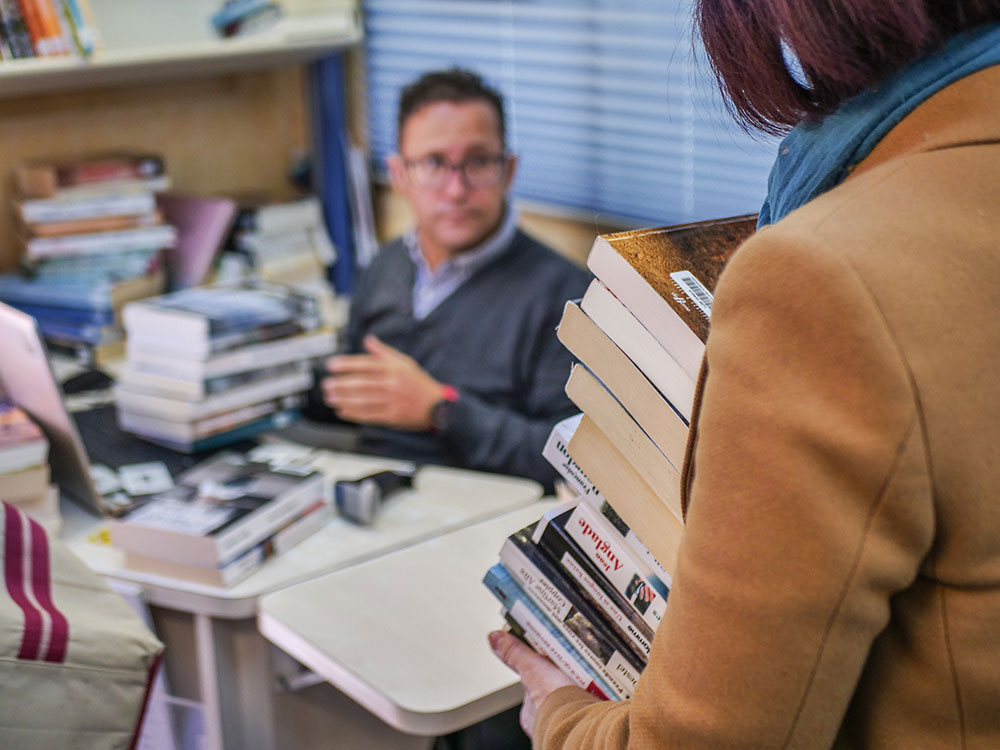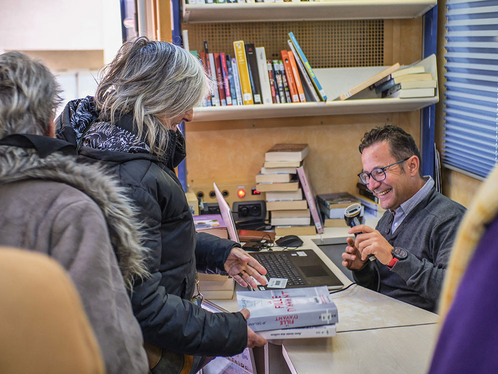 Les abonnés, carte en main – gratuite, comme le prêt –, entrent tour à tour, échangeant quelques mots avec Alain, posté derrière son comptoir à l’entrée. "Je suis là pour enregistrer les prêts, mais aussi pour livrer des livres aux personnes qui ne peuvent pas se déplacer", explique-t-il en scannant un ouvrage.