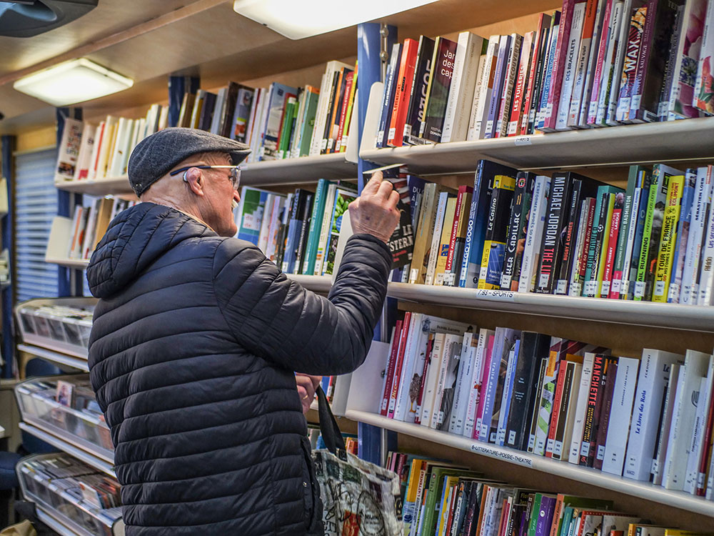 Non loin d’elles, Patrick, 63 ans, repart avec un sac bien rempli. "Je viens chaque mois chercher une dizaine de livres, pour moi et ma petite-fille. Ici on est toujours très bien accueillis !"