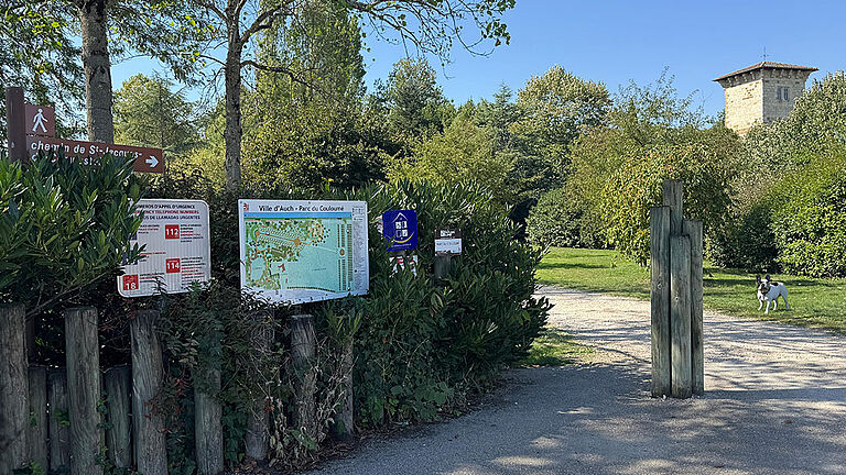Se vos venguètz passejar a Aush, benlèu angueratz au parc deu colomèr (colombier-pigeonnier), au gòlf d’En vaths (du val) o a la Ribèra (bords de rivière).