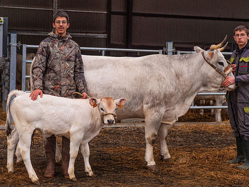 Le choix des élèves s’est porté sur une belle Mirandaise, qui rassemble tous les critères de la race : robe blanche et grise, oreilles blondes, muqueuses auréolées, port de corne haut… Marmotte et son petit veau Titus représenteront l’établissement de Mirande au prochain trophée des lycées agricoles du Salon de l’agriculture, avec le soutien du Conseil Départemental.