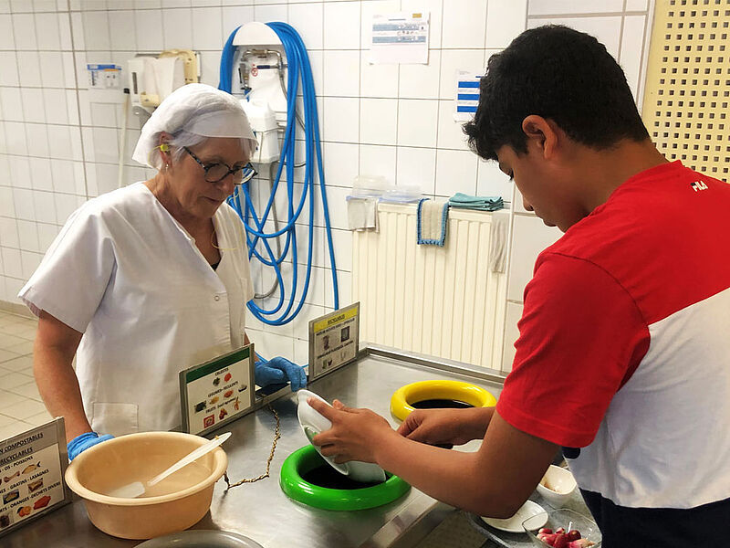 La sensibilisation commence auprès des équipes de cuisine, qui ont trouvé la parade : servir des fruits coupés, plus faciles à manger, utiliser des assiettes plus petites, donner la possibilité de se resservir avec la mise à disposition d’un self-service dans le réfectoire ou encore mettre le pain en bout de chaîne. Des astuces pour limiter au maximum le gâchis de nourriture.